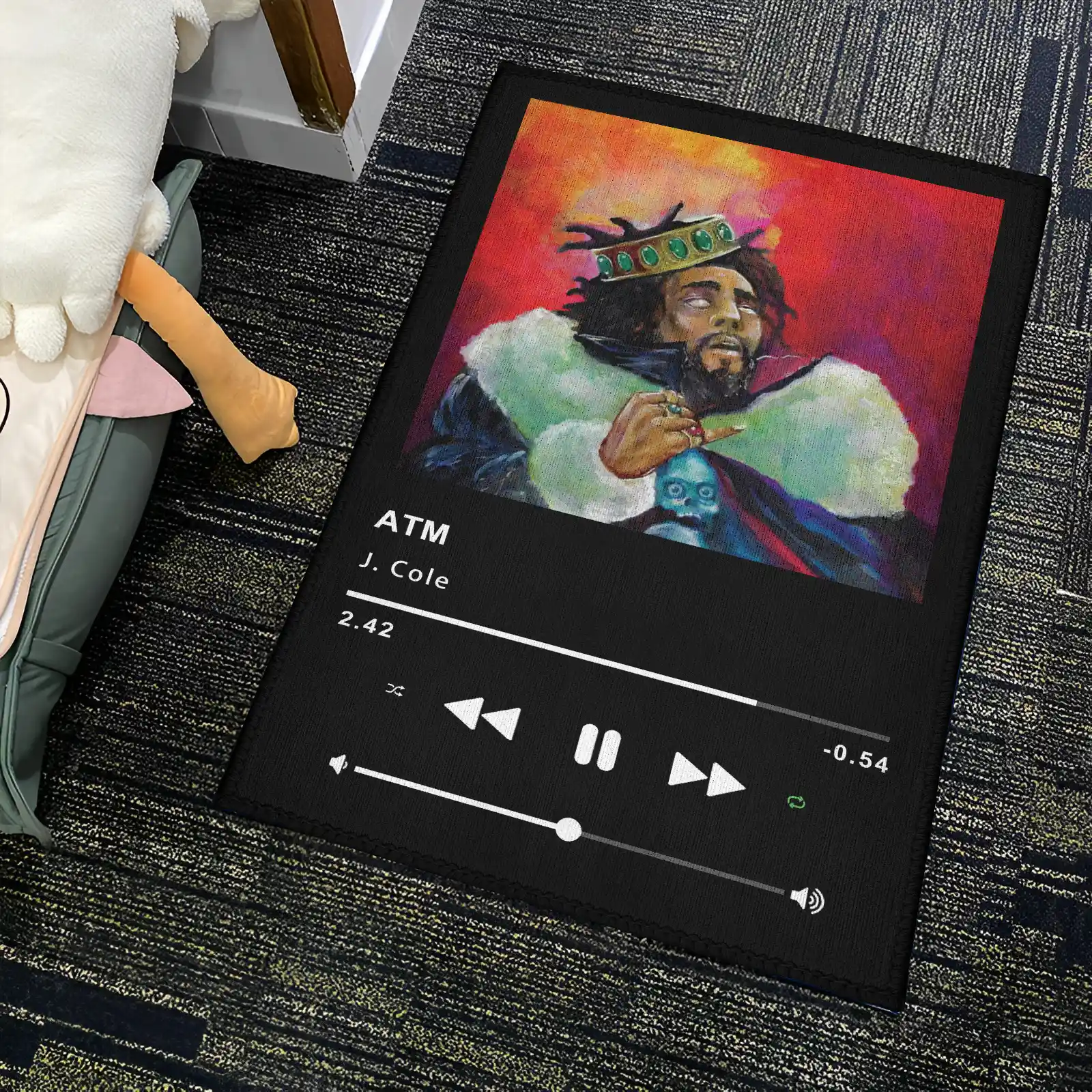 Bring the thoughtful vibe of the track to your floor with the ATM J Cole Music Player Rug. Blending a retro music player design with the introspective themes of the song, this durable floor mat is essential decor for Hiphop purists, studios, or anyone looking to add a deep, iconic edge to their room.