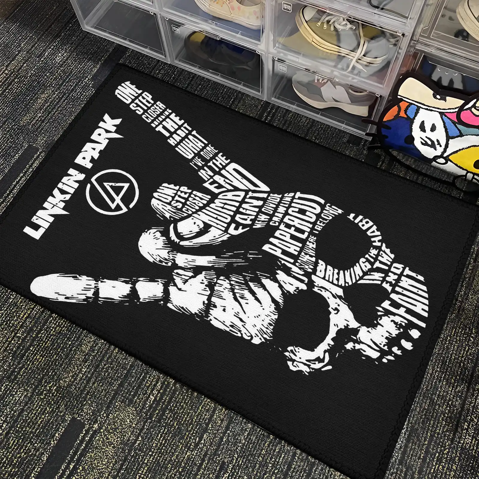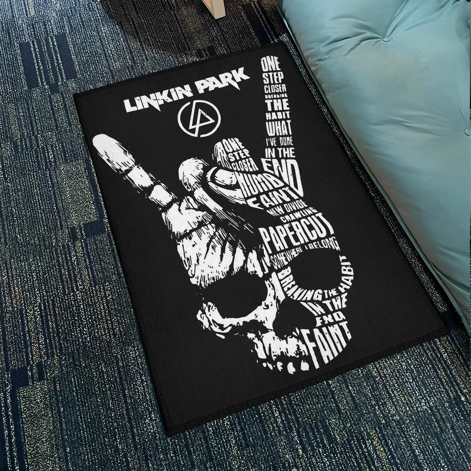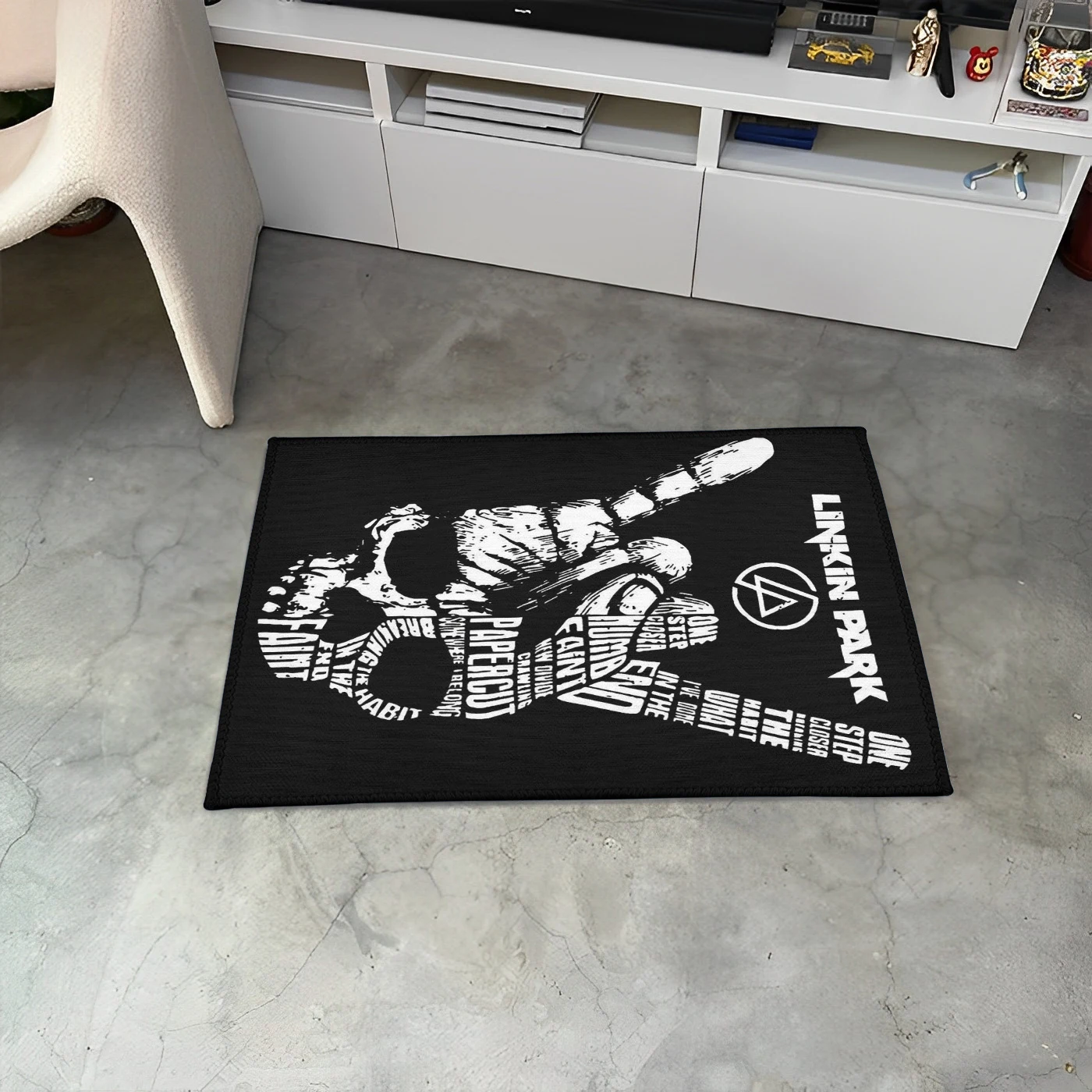 Honor a legend of Nu Metal with the Cool Linkin Park Logo Rock Music Rug. Featuring the band's recognizable logo and signature aesthetic, this durable floor mat is essential decor for fans of Linkin Park, rock music enthusiasts, or anyone wanting a bold, dark aesthetic for their bedroom or music room.Product Features