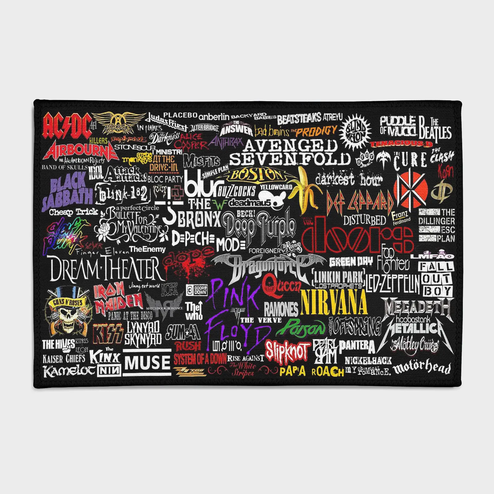 Set the perfect stage for any gathering with this Cool Rock Band Logo Rug. Featuring a collage of iconic rock band logos and vintage tour art, this durable floor mat is the ultimate decor piece for music bars, party rooms, man caves, or anyone who lives and breathes classic rock.Product Features