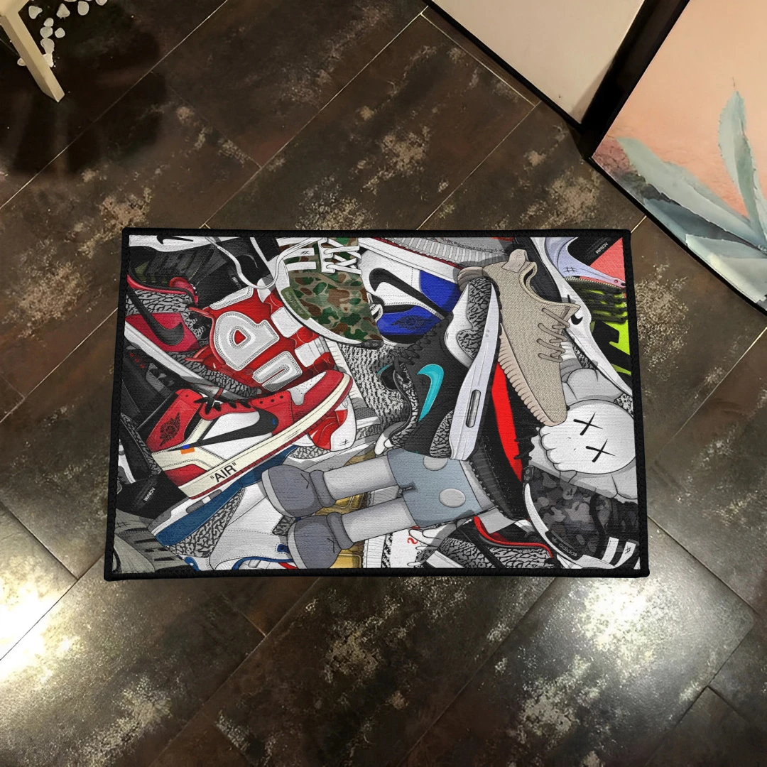 Cool Sneakerhead Rug – Unique Boy Game Room Bedroom Decor Gift Mat
