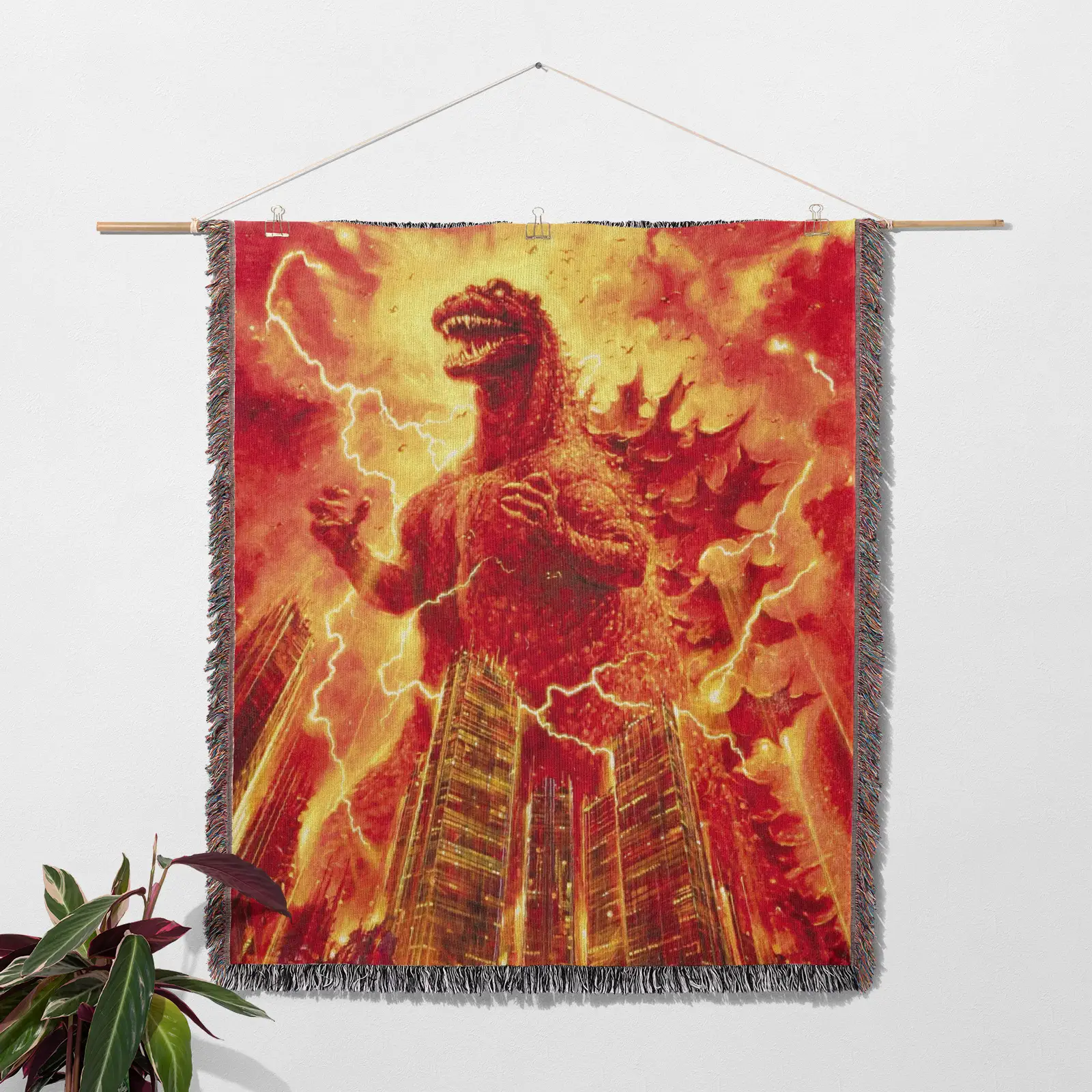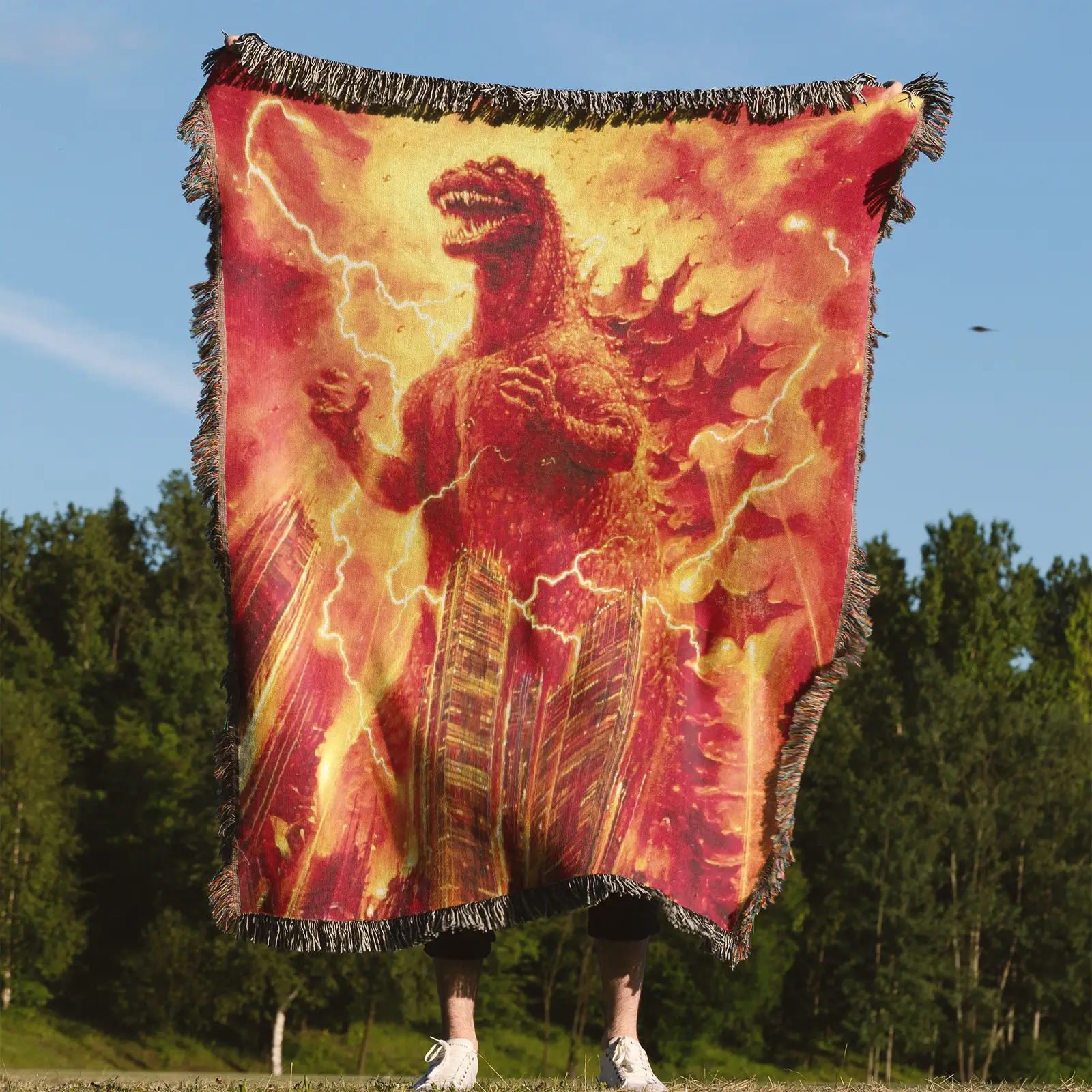 Godzilla Burning Monster Woven Tapestry Throw Blanket