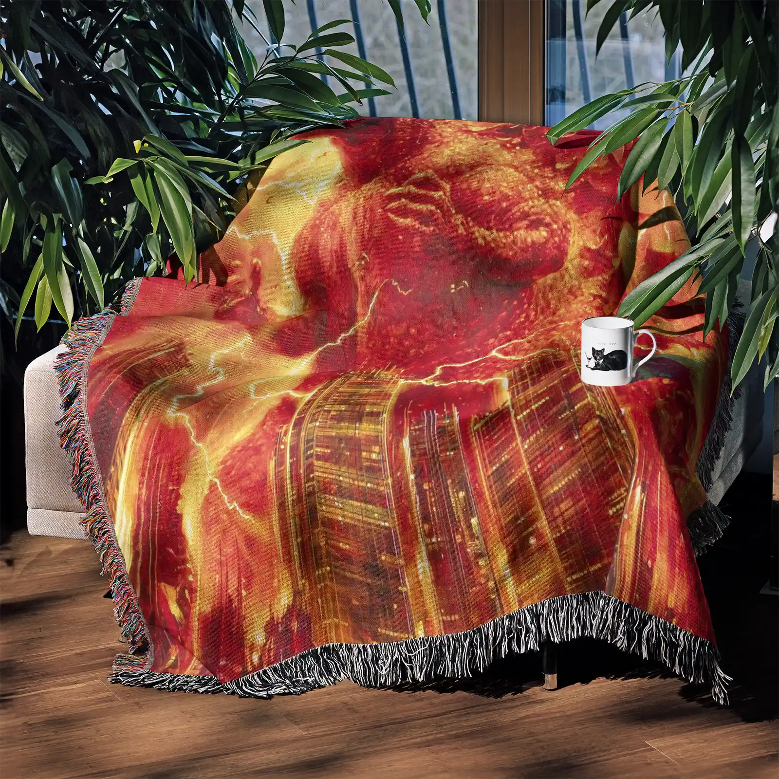 Burning Monster Woven Tapestry Throw Blanket