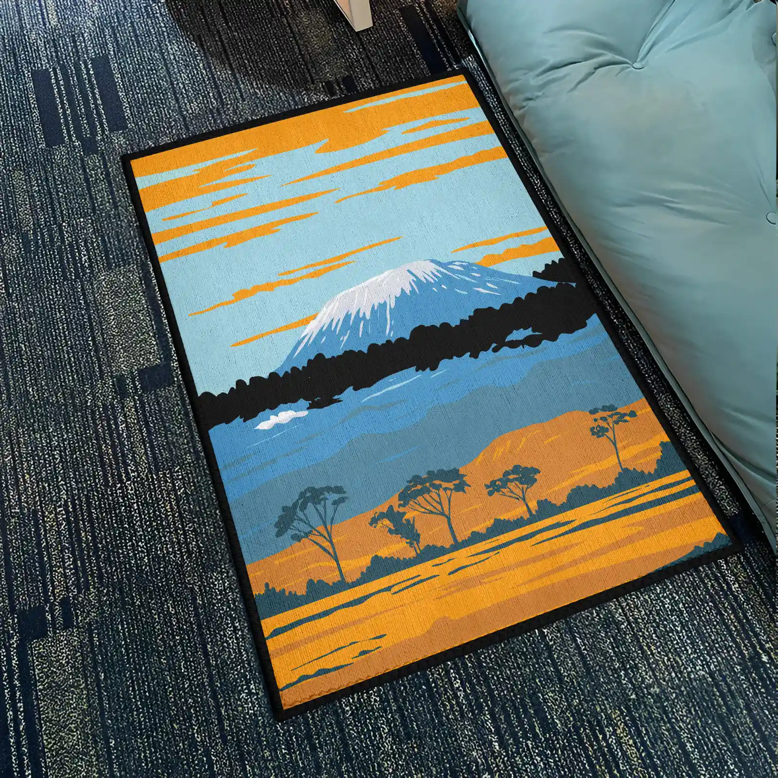 Capture the majesty of Africa with the Kilimanjaro Mountain Art Rug. Featuring a stunning, artistic rendition of the iconic peak, this durable floor mat is a perfect centerpiece for travel-themed rooms, dens, or offices, appealing to adventurers and nature lovers.Product Features
