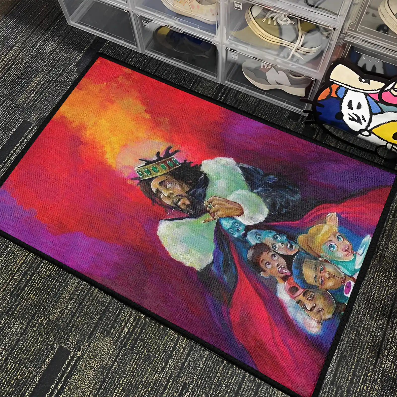 Pay tribute to one of Hip Hop's most introspective works with the KOD J Cole Album Cover Rug. Featuring the instantly recognizable and graphic album art, this durable floor mat is a must-have for dedicated J Cole fans, adding a thoughtful, iconic aesthetic to bedrooms, listening rooms, or studios.