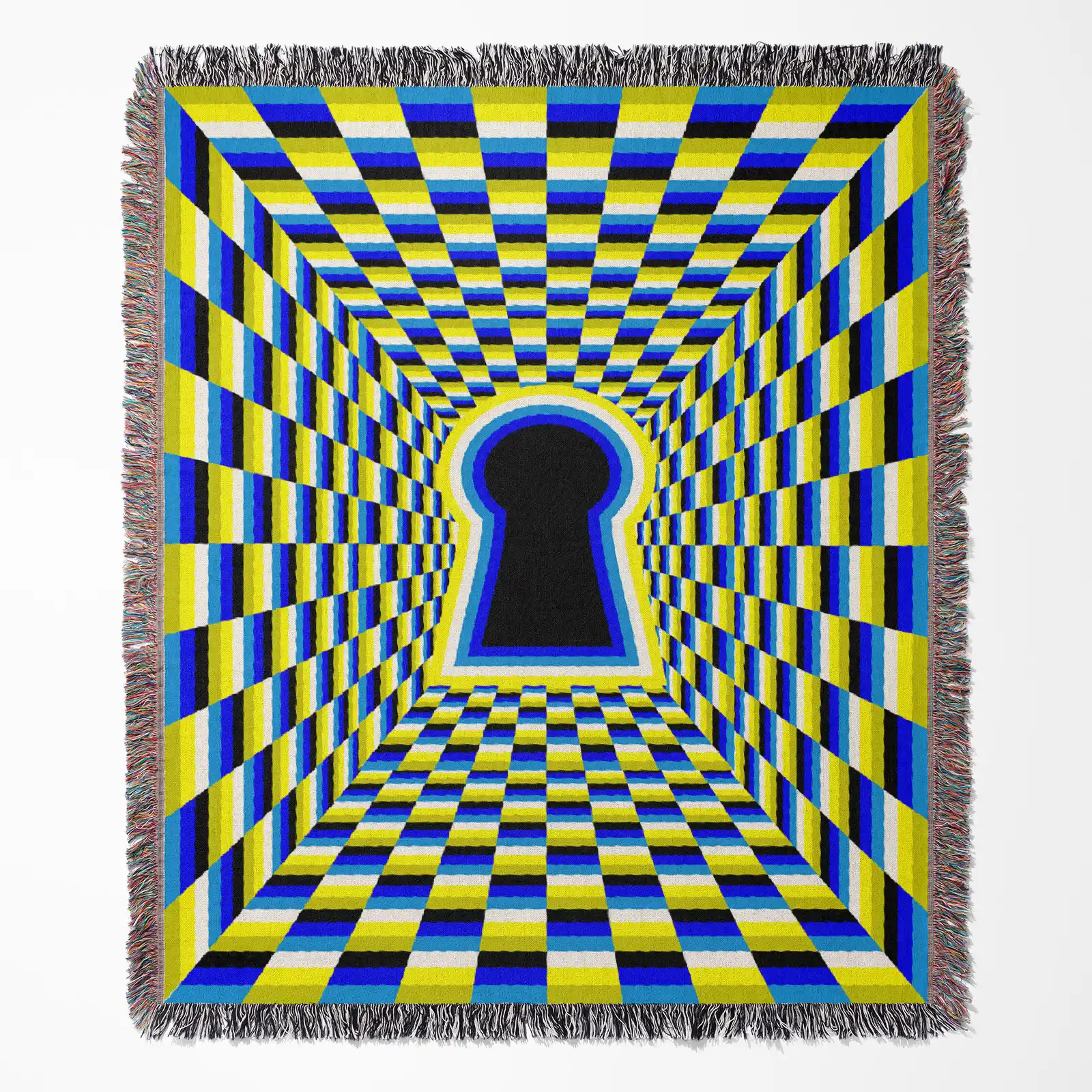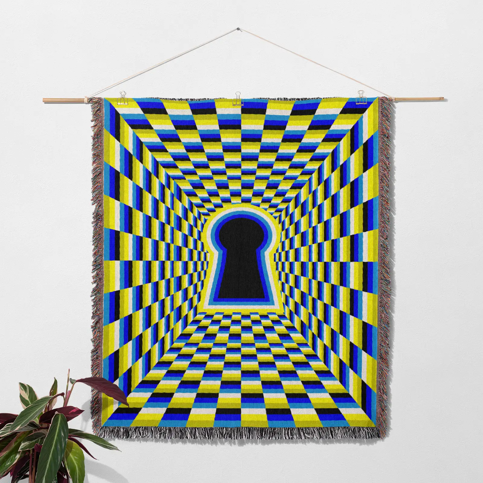 Optical Illusion Keyhole In Checkered Tunnel Woven Tapestry Throw Blanket