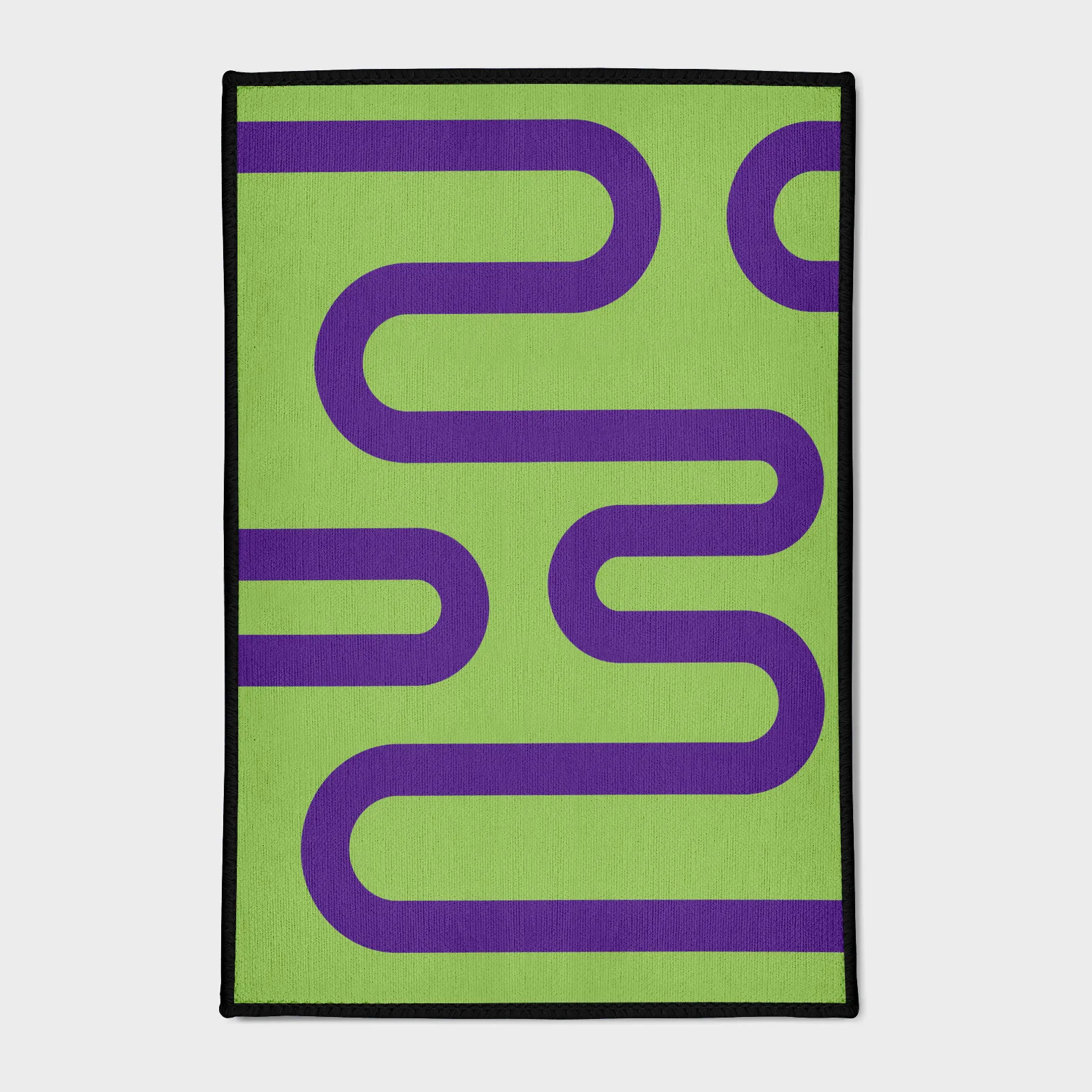 Introduce a fluid, artistic touch to your space with the Purple Curved Lines on Green Rug. This abstract floor mat features dynamic purple lines set against a soothing green background, creating a contemporary and elegant piece perfect for modern living rooms, studios, or bedrooms.Product Features