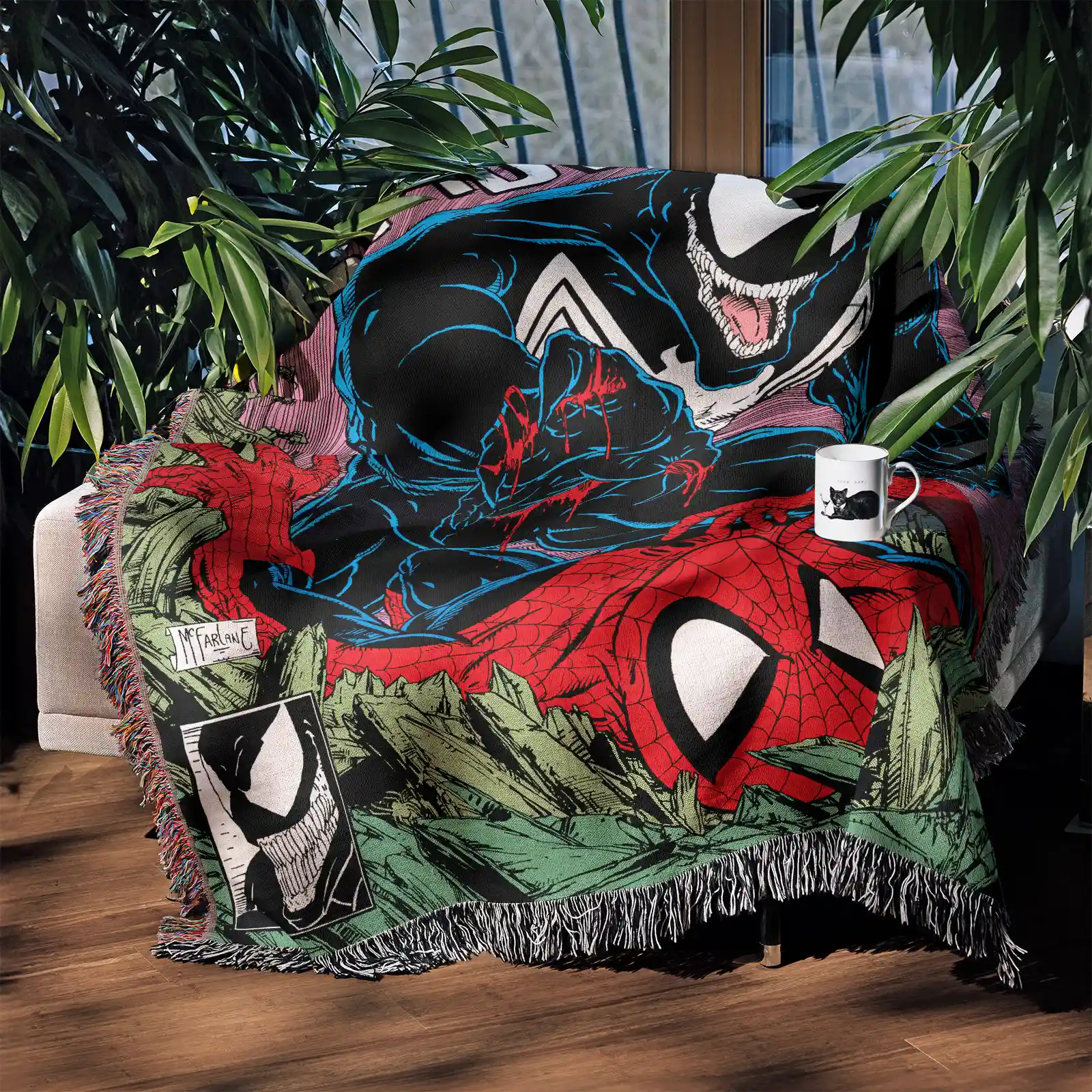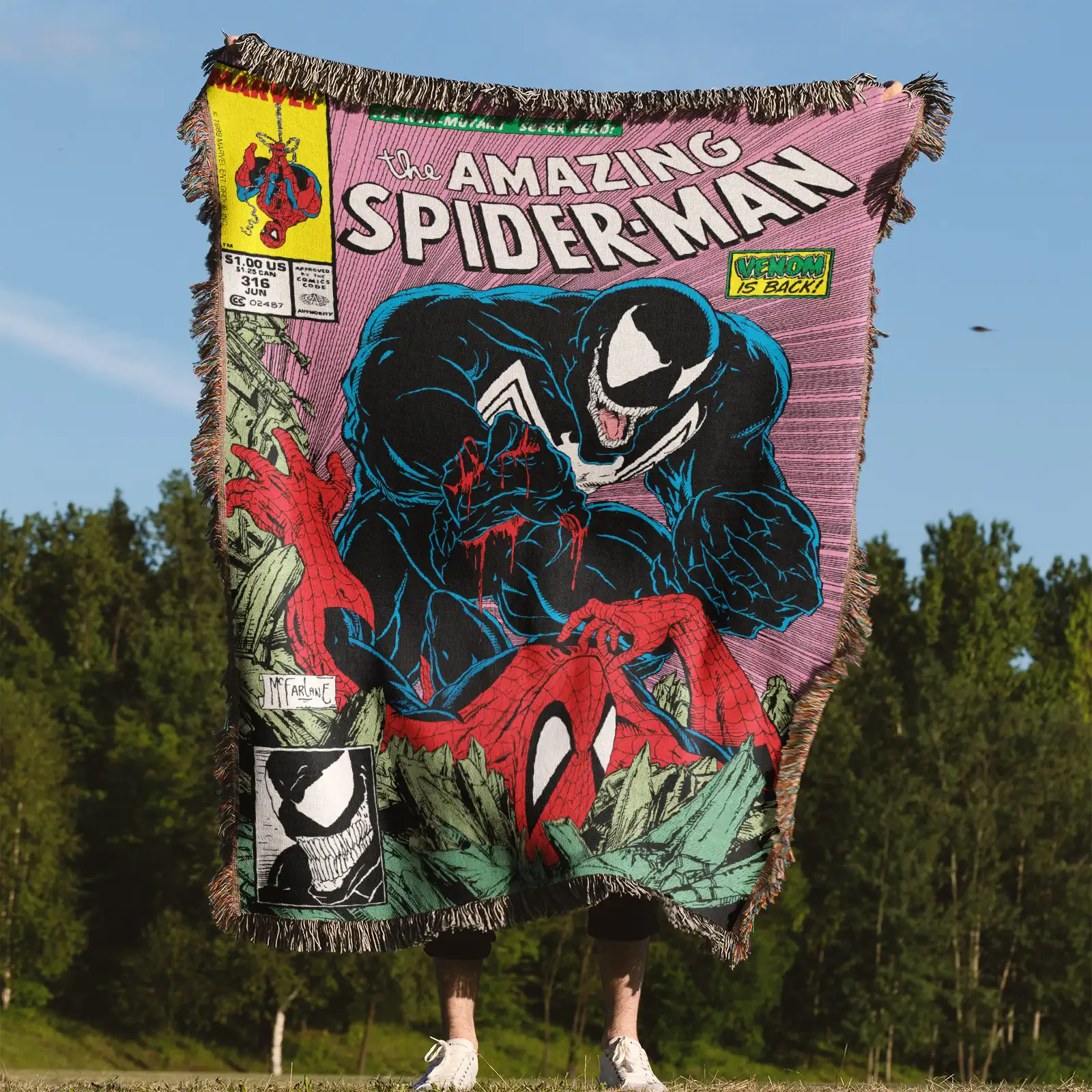 Swing into action with this high-quality, woven Spider-Man tapestry. This officially inspired Marvel blanket is a durable Spider-Man throw blanket, featuring dynamic comic art of your friendly neighborhood hero.
