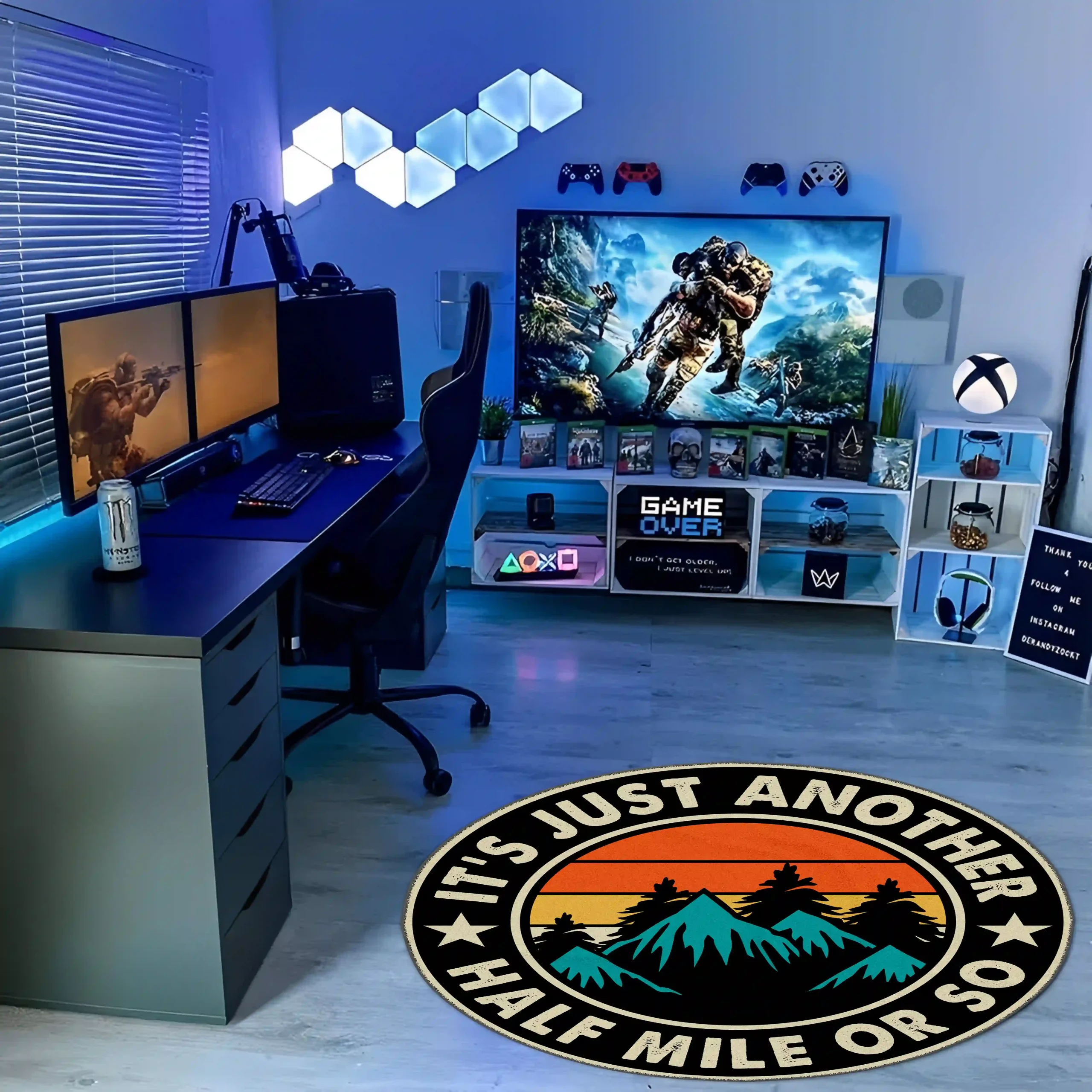 Bring the spirit of adventure into your home with the Vintage Hiking Mountain Round Rug. Featuring a charming retro mountain hiking scene, this rug is perfect for nature lovers, hikers, or anyone looking to add a cozy outdoorsy touch to their bedroom, living room, or cabin space.Product Features